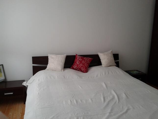 Apartamentul este complet decomandat. La intrare incepe un mic lobby urmat de o bucatarie larga tip american, apoi livingul imens cu iesire la terasa. In fiecare parte din staga si dreapta cate un dormitor mare cu spatii calme avand fiecare baia proprie. Una din bai este tip en-suite. Are 2 intrari separate pe terasa. Intregul apartament este nou amenajat cu materiale premium de calitate si mobilat cu gust. Are aparatura completa. Iar cladirea are finisaje de lux: marmura pe casa scarii, balustrade de inox, 15-20 cm izolatii termosistem, gresii premiu Spania, etc. Parcare proprie la cladire. Toate utilitatile plus internet de mare viteza pt video.